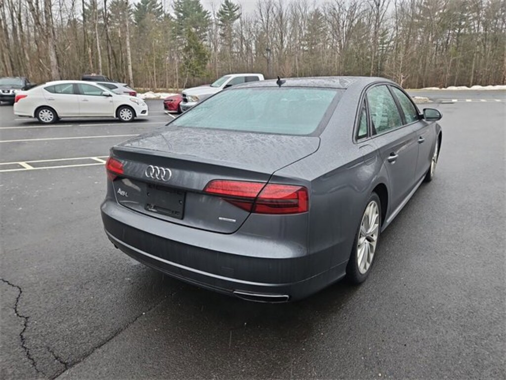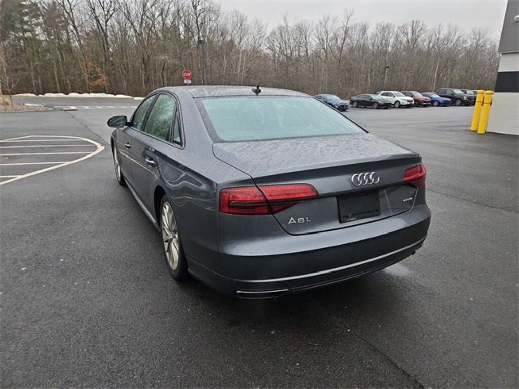 Leather. Recent Arrival! Clean CARFAX. 19/29 City/Highway MPG 2017 Audi A8 L 3.0T quattro 4D Sedan 3.0L V6 Turbocharged DOHC 24V ULEV II 333hp quattro GrayFeatures: Leather, 14 Speakers, 18-Way Power Heated Front Seats w/Memory, 4-Wheel Disc Brakes, ABS brakes, Adaptive suspension, Air Conditioning, Alloy wheels, Auto tilt-away steering wheel, Auto-dimming door mirrors, Auto-dimming Rear-View mirror, Auto-leveling suspension, Automatic temperature control, Backup Camera, Bose Surround Sound System w/AudioPilot, Brake assist, Bumpers: body-color, CD player, Compass, data system, Delay-off headlights, Door auto-latch, Driver door bin, Driver vanity mirror, Dual front impact airbags, Dual front side impact airbags, DVD-Audio, Electronic Stability Control, Four wheel independent suspension, Front anti-roll bar, Front Bucket Seats, Front dual zone A/C, Front Fog Lights, Front reading lights, Garage door transmitter: HomeLink, Genuine wood console insert, Head restraints memory, Headlight cleaning, Heated door mirrors, Heated Front seats, HVAC memory, Illuminated entry, Knee airbag, Leather Shift Knob, Leather steering wheel, Low tire pressure warning, Memory seat, Navigation System, Occupant sensing airbag, Outside temperature display, Overhead airbag, Overhead console, Panic alarm, Passenger door bin, Passenger vanity mirror, Power adjustable front head restraints, Power door mirrors, Power driver seat, Power Moonroof, Power passenger seat, Power steering, Power Windows, Radio: Audi MMI Navigation Plus System, Rain sensing wipers, Rear air conditioning, Rear anti-roll bar, Rear dual zone A/C, Rear fog lights, Rear reading lights, Rear seat center armrest, Rear side impact airbag, Rear Window Blind, Rear window defroster, Remote Keyless Entry, Seatbelt memory, Security system, SiriusXM Satellite Radio, Speed control, Speed-Sensitive Wipers, Steering wheel memory, Steering wheel mounted audio controls, Tachometer, Telescoping steering wheel, Tilt steering wheel, Traction control, Trip computer, Turn signal indicator mirrors, Valetta Leather Seat Upholstery, Variably intermittent wipers, and Wheels: 9 x 19 15-Spoke-Design Alloy.