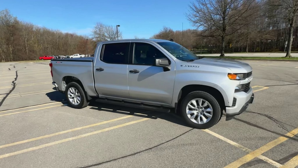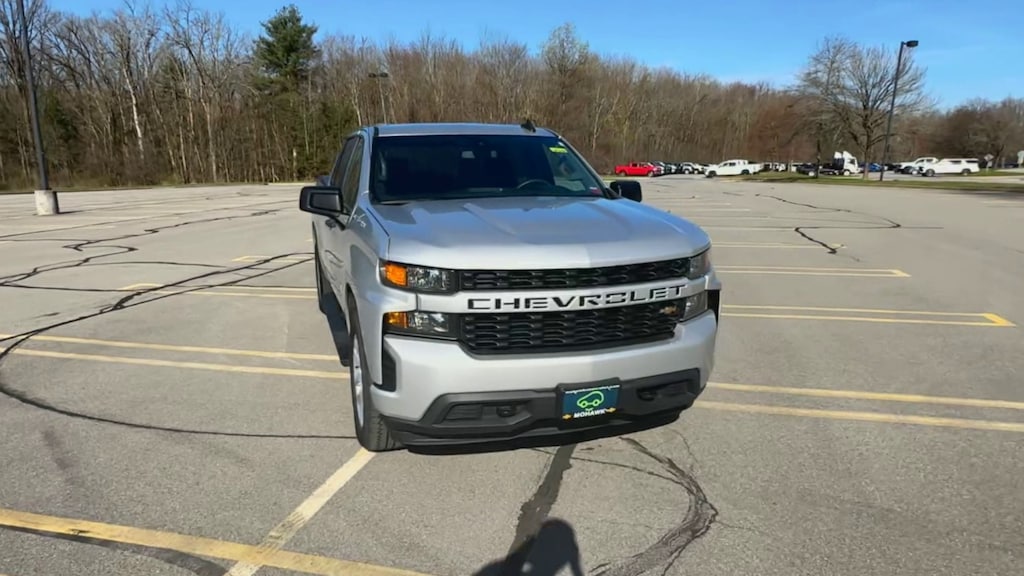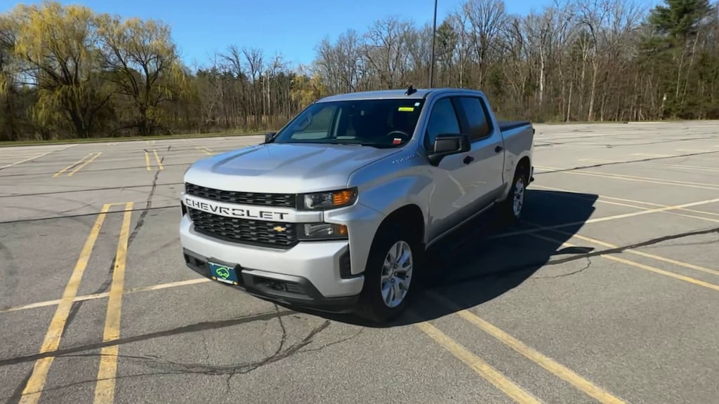 8-Speed Automatic, 4WD, Black Cloth. Recent Arrival! Clean CARFAX. 2021 Chevrolet Silverado 1500 Custom 4D Crew Cab 2.7L Turbo 4WD Silver Ice MetallicFeatures: Cloth Rear Seat w/Storage Package, Custom Convenience Package (Electric Rear-Window Defogger, EZ Lift Power Lock & Release Tailgate, LED Cargo Area Lighting, Remote Vehicle Starter System, and Theft Deterrent System (Unauthorized Entry)), Custom Value Package, Infotainment Package (4G LTE Wi-Fi Hot Spot Capable, Chevrolet Connected Access Capable, OnStar & Chevrolet Connected Services Capable, and SiriusXM Satellite Radio), Preferred Equipment Group 1CX (170 Amp Alternator, 3.5 Diagonal Monochromatic Display, Bluetooth, Body Color Grille, Color-Keyed Carpeting Floor Covering, Compass, Deep-Tinted Glass, Electronic Cruise Control, Front Frame-Mounted Black Recovery Hooks, Front Rubberized Vinyl Floor Mats, Manual Tilt Wheel Steering Column, Power Door Locks, Power Front Windows w/Driver Express Up/Down, Power Front Windows w/Passenger Express Down, Power Rear Windows w/Express Down, Rear 60/40 Folding Bench Seat (Folds Up), Rear Rubberized-Vinyl Floor Mats, Remote Keyless Entry, and Standard Tailgate), Safety Confidence Package (4.2 Diagonal Color Display Driver Info Center, Automatic Emergency Braking, Forward Collision Alert, Front Pedestrian Braking, and Steering Wheel Audio Controls), Trailering Package (Hitch Guidance), 8-Speed Automatic, 4WD, Black Cloth, 120-Volt Bed Mounted Power Outlet, 120-Volt Instrument Panel Power Outlet, 3.42 Rear Axle Ratio, 4-Wheel Disc Brakes, 40/20/40 Front Split Bench Seat, 6 Speakers, ABS brakes, Air Conditioning, Alloy wheels, Apple CarPlay/Android Auto, Brake assist, Bumpers: body-color, Cloth Seat Trim, data system, Delay-off headlights, Driver door bin, Driver vanity mirror, Dual front impact airbags, Dual front side impact airbags, Electronic Stability Control, Front anti-roll bar, Front Center Armrest w/Storage, Front License Plate Kit, Front reading lights, Front wheel independent suspension, Fully Automatic Headlights, Heated door mirrors, Heavy Duty Suspension, Illuminated entry, Low tire pressure warning, Occupant sensing airbag, Outside temperature display, Overhead airbag, Overhead console, Panic alarm, Passenger door bin, Passenger vanity mirror, Polished Exhaust Tip, Power door mirrors, Power steering, Power Windows, Premium audio system: Chevrolet Infotainment 3, Radio: Chevrolet Infotainment 3 System, Rear reading lights, Rear step bumper, Rear window defroster, Remote Keyless Entry, Security system, Single-Zone Manual/Semi-Automatic Air Conditioning, SiriusXM Satellite Radio, Speed control, Speed-sensing steering, Split folding rear seat, Tachometer, Tilt steering wheel, Traction control, Trip computer, Variably intermittent wipers, Voltmeter, and Wheels: 20 x 9 Bright Silver Painted Aluminum.
