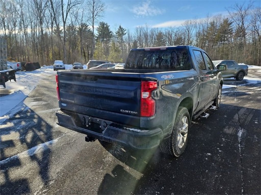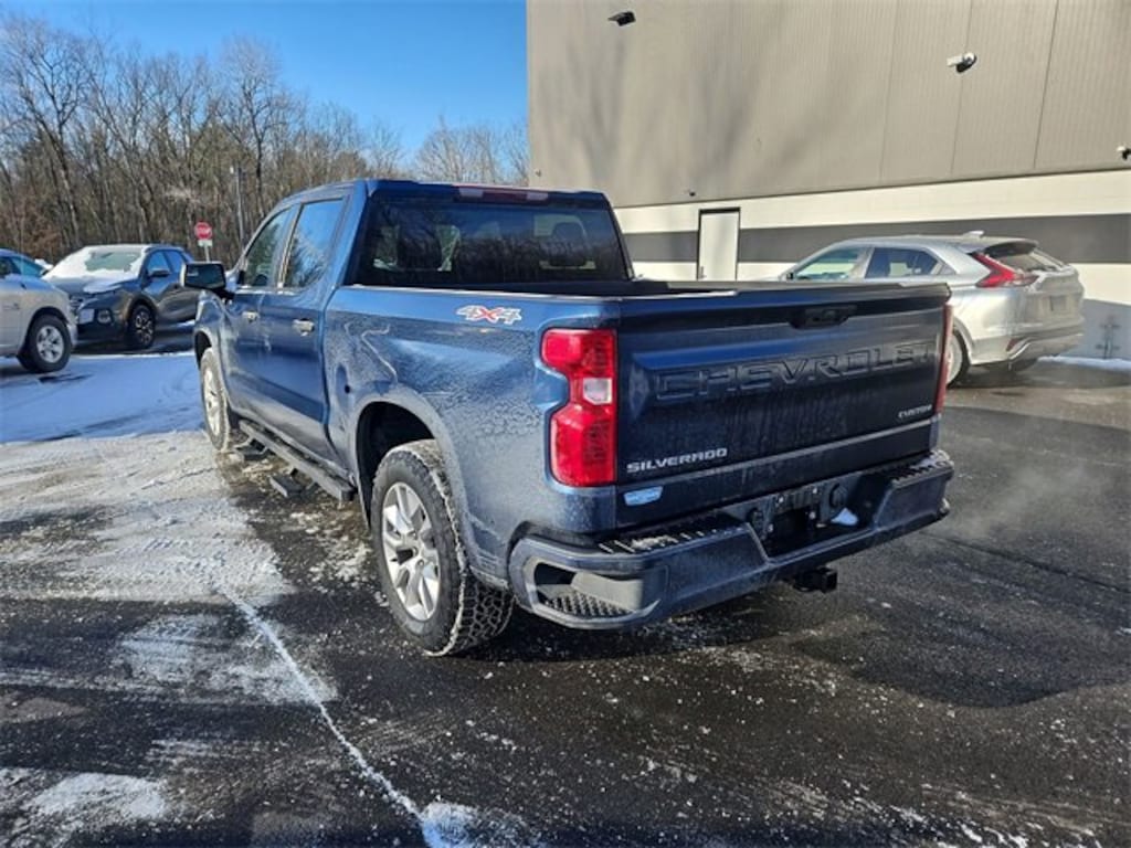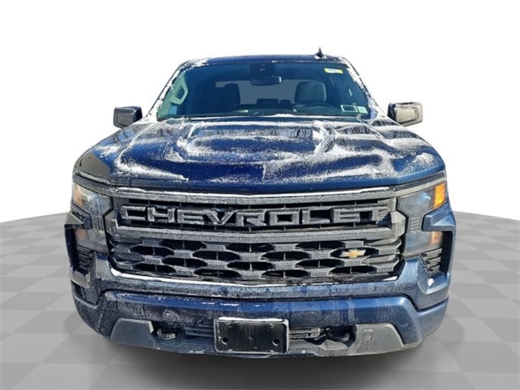 8-Speed Automatic, 4WD, Black Cloth. Recent Arrival! Clean CARFAX. Odometer is 27717 miles below market average! 2022 Chevrolet Silverado 1500 Custom 4D Crew Cab 2.7L Turbo 4WD Northsky Blue MetallicFeatures: Custom Convenience Package (Electric Rear-Window Defogger, EZ Lift Power Lock & Release Tailgate, LED Cargo Area Lighting, and Remote Vehicle Starter System), Custom Value Package, High Capacity Suspension Package, Preferred Equipment Group 1CX (10-Way Power Driver Seat w/Lumbar, 120-Volt Bed Mounted Power Outlet, 120-Volt Instrument Panel Power Outlet, 3.5 Monochromatic Display Driver Info Center, Bluetooth, Chevrolet Connected Access Capable, Color-Keyed Carpeting Floor Covering, Compass, Deep-Tinted Glass, Dual Rear USB Ports (Charge Only), Electrical Steering Column Lock, Electronic Cruise Control, Front Frame-Mounted Black Recovery Hooks, Front Rubberized Vinyl Floor Mats, HD Rear Vision Camera, Manual Tilt Wheel Steering Column, OnStar & Chevrolet Connected Services Capable, Power Front Windows w/Driver Express Up/Down, Power Front Windows w/Passenger Express Down, Power Rear Windows w/Express Down, Rear 60/40 Folding Bench Seat (Folds Up), Rear Rubberized-Vinyl Floor Mats, Remote Keyless Entry, SiriusXM Satellite Radio, Standard Tailgate, Theft Deterrent System (Unauthorized Entry), Wi-Fi Hot Spot Capable, and Wireless Phone Projection), Trailering Package (Hitch Guidance), 8-Speed Automatic, 4WD, Black Cloth, 3.42 Rear Axle Ratio, 4-Wheel Disc Brakes, 40/20/40 Front Split-Bench Seat, 6 Speakers, 6-Speaker Audio System, ABS brakes, Air Conditioning, Alloy wheels, Apple CarPlay/Android Auto, Auto High-beam Headlights, Auto-Locking Rear Differential, Automatic Emergency Braking, Brake assist, Bumpers: body-color, Chevytec Spray-On Black Bedliner, Cloth Seat Trim, data system, Delay-off headlights, Driver door bin, Driver vanity mirror, Dual front impact airbags, Dual front side impact airbags, Electronic Stability Control, Following Distance Indicator, Forward Collision Alert, Front anti-roll bar, Front Center Armrest w/Storage, Front License Plate Kit, Front Pedestrian Braking, Front reading lights, Front wheel independent suspension, Fully Automatic Headlights, Heated door mirrors, Illuminated entry, IntelliBeam Automatic High Beam On/Off, Lane Keep Assist w/Lane Departure Warning, Low tire pressure warning, Not Equipped w/Rear USB Ports, Occupant sensing airbag, Outside temperature display, Overhead airbag, Overhead console, Panic alarm, Passenger door bin, Passenger vanity mirror, Power door mirrors, Power driver seat, Power steering, Power Windows, Premium audio system: Chevrolet Infotainment 3, Radio: Chevrolet Infotainment 3 System, Rear reading lights, Rear step bumper, Rear window defroster, Remote Keyless Entry, Security system, SiriusXM Satellite Radio, Speed control, Speed-sensing steering, Split folding rear seat, Tachometer, Tilt steering wheel, Traction control, Trip computer, Variably intermittent wipers, Voltmeter, and Wheels: 20 x 9 Bright Silver Painted Aluminum.