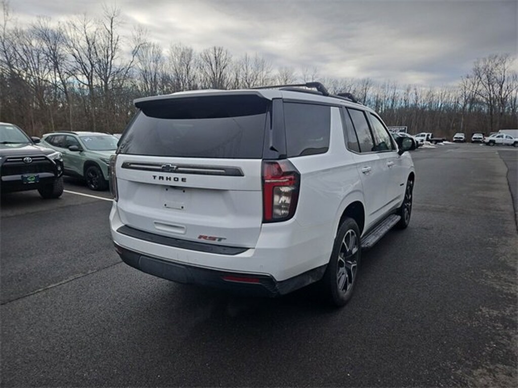 4WD, Jet Black/Victory Red Leather. Recent Arrival! 2022 Chevrolet Tahoe RST 4D Sport Utility EcoTec3 5.3L V8 4WD Summit WhiteAwards:* ALG Residual ValueFeatures: Driver Alert Package (Lane Change Alert w/Side Blind Zone Alert and Rear Cross Traffic Alert), License Plate Front Mounting Package, Luxury Package (2nd Row Pwr Release 60/40 Split-Folding Bench Seat, 3rd Row 60/40 Power-Folding Split-Bench Seat, HD Surround Vision, Heated Rear Seats, Heated Steering Wheel, Memory Settings, Outside Heated Power-Adjustable Mirrors, Power Tilt & Telescopic Steering Column, and Rear Pedestrian Alert), Preferred Equipment Group 1SP (1st & 2nd Row Color-Keyed Carpeted Floor Mats, Auto-Dimming Rear-View Mirror, Automatic Stop/Start, Bose 9-Speaker Stereo Audio System Feature, Bright Front & Rear Door Sill Plates, Color-Keyed Carpeting Floor Covering, Driver & Front Outboard Passenger Airbags, Enhanced Driver Information Center, Floor Console w/Storage Area, Hands-Free Rear Power Programmable Liftgate, Infotainment Display, Leather-Wrapped Steering Wheel, LED Daytime Running Lamps, Memory Settings for Driver, Remote Start, SiriusXM Radio w/360L, Start/Stop System Disable Button, Universal Home Remote, and Wireless Charging), 4WD, Jet Black/Victory Red Leather, 10-Way Power Driver & Passenger Seat Adjusters, 3.23 Rear Axle Ratio, 3rd row seats: split-bench, 4-Wheel Disc Brakes, 9 Speakers, ABS brakes, Air Conditioning, Alloy wheels, AM/FM radio: SiriusXM with 360L, Apple CarPlay/Android Auto, Auto High-beam Headlights, Auto-dimming Rear-View mirror, Automatic temperature control, Black Roof Rack Cross Rails, Brake assist, Bumpers: body-color, Compass, Delay-off headlights, Driver door bin, Driver vanity mirror, Dual front impact airbags, Dual front side impact airbags, Electronic Stability Control, Emergency communication system: OnStar and Chevrolet connected services capable, Four wheel independent suspension, Front anti-roll bar, Front Bucket Seats, Front Center Armrest, Front dual zone A/C, Front High-Back Reclining Bucket Seats, Front reading lights, Fully Automatic Headlights, Garage door transmitter, Heated door mirrors, Heated Front Seats, Heated Front seats, Illuminated entry, Leather steering wheel, Low tire pressure warning, Memory seat, Navigation System, Not Equipped w/Front & Rear Park Assist, Not Equipped w/Steering Column Lock, Occupant sensing airbag, Outside temperature display, Overhead airbag, Overhead console, Panic alarm, Passenger door bin, Passenger vanity mirror, Perforated Leather Seat Trim, Power door mirrors, Power driver seat, Power Liftgate, Power passenger seat, Power steering, Power Windows, Premium audio system: Chevrolet Infotainment System 3, Premium Smooth Ride Suspension, Radio: Chevrolet Infotainment 3 Premium System, Rain sensing wipers, Rear air conditioning, Rear anti-roll bar, Rear reading lights, Rear seat center armrest, Rear window defroster, Rear window wiper, Remote Keyless Entry, Roof rack: rails only, Security system, Set of 4 Wheel Locks (LPO), Speed control, Speed-sensing steering, Split folding rear seat, Spoiler, Steering wheel mounted audio controls, Tachometer, Telescoping steering wheel, Tilt steering wheel, Traction control, Trip computer, Variably intermittent wipers, Voltmeter, and Wheels: 22 x 9 Bright Machined.