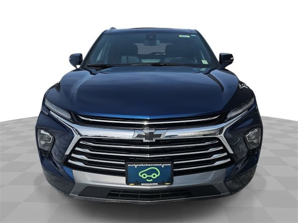 Features: Preferred Equipment Group 0HD (Heated Steering Wheel and Rear Park Assist w/Audible Warning), Blazer Premier, Car Bravo Certified, 4D Sport Utility, 2.0L Turbocharged, 9-Speed Automatic with Overdrive, AWD, Blue Glow Metallic, Jet Black Leather, 170 Amp Alternator, 3.47 Final Drive Axle Ratio, 4-Wheel Disc Brakes, 8 Speakers, 8-Way Power Driver Seat Adjuster, ABS brakes, Air Conditioning, Alloy wheels, AM/FM radio: SiriusXM with 360L, Apple CarPlay/Android Auto, Auto High-beam Headlights, Auto-dimming door mirrors, Auto-dimming Rear-View mirror, Automatic temperature control, Bose Premium 8-Speaker Audio System Feature, Brake assist, Bumpers: body-color, Child-Seat-Sensing Airbag, Compass, data system, Delay-off headlights, Driver door bin, Driver vanity mirror, Dual front impact airbags, Dual front side impact airbags, Electronic Stability Control, Emergency communication system: OnStar and Chevrolet connected services capable, Four wheel independent suspension, Front & Rear Black Bowties, Front anti-roll bar, Front Bucket Seats, Front Center Armrest, Front dual zone A/C, Front reading lights, Fully Automatic Headlights, Garage door transmitter, Heated door mirrors, Heated Front Seats, Heated Front seats, Heated steering wheel, Illuminated entry, Knee airbag, Leather Shift Knob, Low tire pressure warning, Navigation System, Not Equipped w/Rear Park Assist, Occupant sensing airbag, Outside temperature display, Overhead airbag, Overhead console, Panic alarm, Passenger door bin, Passenger vanity mirror, Perforated Leather-Appointed Seat Trim, Power door mirrors, Power Driver Lumbar Control, Power driver seat, Power Liftgate, Power Panoramic Tilt-Sliding Sunroof, Power Passenger Seat, Power passenger seat, Power steering, Power Windows, Premium audio system: Chevrolet Infotainment 3 Premium, Radio: Chevrolet Infotainment 3 Premium System, Rear anti-roll bar, Rear reading lights, Rear seat center armrest, Rear window defroster, Rear window wiper, Remote Keyless Entry, Ride & Handling Suspension, Security system, SiriusXM w/360L, Speed control, Speed-sensing steering, Split folding rear seat, Spoiler, Steering wheel mounted audio controls, Tachometer, Telescoping steering wheel, Tilt steering wheel, Traction control, Trip computer, Turn signal indicator mirrors, Variably intermittent wipers, Voltmeter, and Wheels: 20 Medium Android Machined-Face