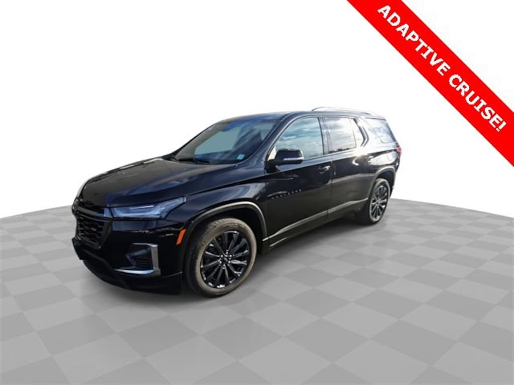 Features: Front License Plate Bracket Mounting Package, Preferred Equipment Group 2LT (Heated Front Seats), Traverse RS, Car Bravo Certified, 4D Sport Utility, 3.6L V6 SIDI VVT, 9-Speed Automatic, AWD, Mosaic Black Metallic, Jet Black/Spice Red Leather, 10 Speakers, 3.49 Axle Ratio, 3rd row seats: split-bench, 4-Wheel Disc Brakes, 6-Way Power Front Passenger Seat, 8-Way Power Driver Seat Adjuster, ABS brakes, Air Conditioning, Alloy wheels, AM/FM radio: SiriusXM with 360L, Apple CarPlay/Android Auto, Auto High-beam Headlights, Auto-dimming Rear-View mirror, Automatic temperature control, Backup Camera, Bose Premium 10-Speaker Audio System Feature, Brake assist, Bumpers: body-color, Compass, data system, Delay-off headlights, Driver door bin, Driver vanity mirror, Dual front impact airbags, Dual front side impact airbags, Dual SkyScape 2-Panel Power Sunroof, Electronic Stability Control, Emergency communication system, Four wheel independent suspension, Front anti-roll bar, Front Bucket Seats, Front Center Armrest, Front dual zone A/C, Front Passenger 2-Way Power Lumbar, Front reading lights, Fully Automatic Headlights, Garage door transmitter, Heated door mirrors, Heated Front seats, Heated steering wheel, Illuminated entry, Leather steering wheel, Low tire pressure warning, Navigation System, Not Equipped w/Rear Park Assist (060), Occupant sensing airbag, Outside temperature display, Overhead airbag, Overhead console, Panic alarm, Passenger door bin, Passenger vanity mirror, Perforated Leather-Appointed Seat Trim, Power door mirrors, Power Driver Lumbar Control, Power driver seat, Power Liftgate, Power passenger seat, Power steering, Power Windows, Premium audio system: Chevrolet Infotainment 3 Plus, Radio: Chevrolet Infotainment 3 Plus System w/Navi, Rear air conditioning, Rear anti-roll bar, Rear reading lights, Rear window defroster, Rear window wiper, Remote Keyless Entry, Security system, SiriusXM w/360L, Speed control, Speed-sensing steering, Spoiler, Steering wheel mounted audio controls, Tachometer, Telescoping steering wheel, Tilt steering wheel, Traction control, Trip computer, Turn signal indicator mirrors, Variably intermittent wipers, Voltmeter, and Wheels: 20 Dark Aluminum.