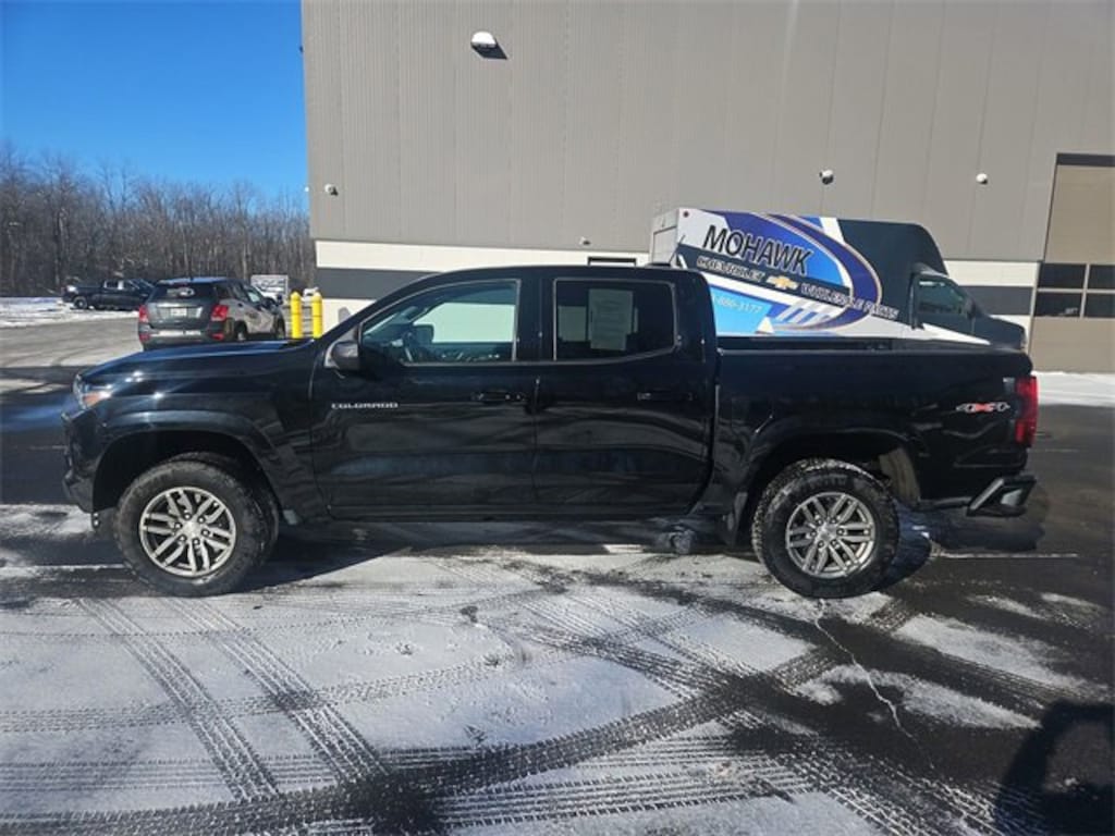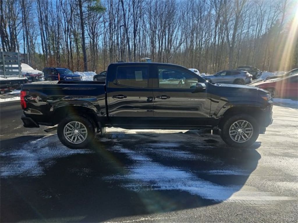 Features: Preferred Equipment Group 4LT (Automatic Emergency Braking, Chevy Safety Assist, Following Distance Indicator, Forward Collision Alert, Front Pedestrian & Bicyclist Braking, IntelliBeam Automatic High Beam On/Off, and Lane Keep Assist w/Lane Departure Warning), Colorado LT, Car Bravo Certified, 4D Crew Cab, 2.7L Turbo, 8-Speed Automatic, 4WD, Black, Black Cloth, 3.42 Rear Axle Ratio, 4-Way Manual Passenger Seat Adjuster, 4-Wheel Disc Brakes, 6 Speakers, 6-Speaker Audio System Feature, 6-Way Manual Driver Seat Adjuster, ABS brakes, Air Conditioning, Alloy wheels, Apple CarPlay/Android Auto, Auto High-beam Headlights, Brake assist, Bumpers: body-color, Cloth Seat Trim, Compass, data system, Delay-off headlights, Driver door bin, Driver vanity mirror, Dual front impact airbags, Dual front side impact airbags, Electronic Stability Control, Front anti-roll bar, Front Bucket Seats, Front Center Armrest, Front License Plate Kit, Front Passenger Seatback Map Pocket, Front reading lights, Front wheel independent suspension, Illuminated entry, Low tire pressure warning, Navigation System, Occupant sensing airbag, Outside temperature display, Overhead airbag, Overhead console, Panic alarm, Passenger door bin, Passenger vanity mirror, Power door mirrors, Power steering, Power Windows, Radio: 11.3 Diagonal Advanced Color LCD Display, Rear reading lights, Rear step bumper, Remote Keyless Entry, Security system, SiriusXM Satellite Radio, SiriusXM Satellite Radio, Speed-sensing steering, Split folding rear seat, Steering Wheel Mounted Audio Controls, Steering wheel mounted audio controls, Tachometer, Tilt steering wheel, Traction control, Trip computer, Variably intermittent wipers, Wheels: 17 x 8 Argent Metallic Aluminum, and Wireless Phone Projection.