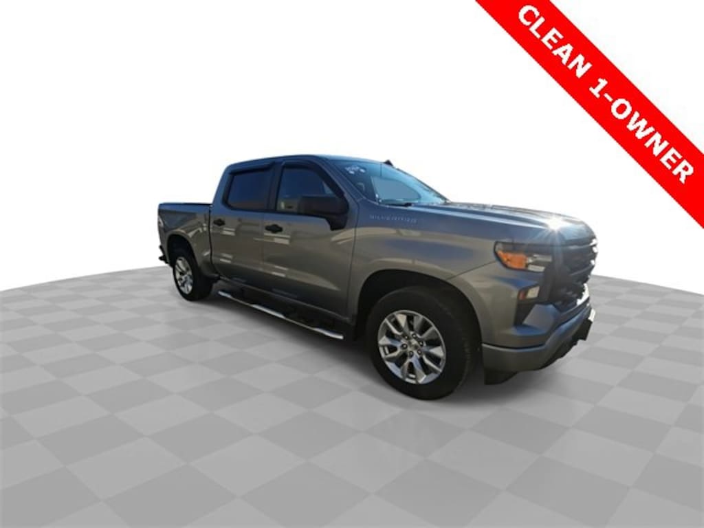 Features: Custom Convenience Package (Electric Rear-Window Defogger, EZ Lift Power Lock & Release Tailgate, LED Cargo Area Lighting, Remote Vehicle Starter System, and Theft Deterrent System (Unauthorized Entry)), Custom Value Package, High Capacity Suspension Package, Preferred Equipment Group 1CX (10-Way Power Driver Seat w/Lumbar, 120-Volt Bed Mounted Power Outlet, 120-Volt Interior Power Outlet, 3.5 Monochromatic Display Driver Info Center, Bluetooth, Chevrolet Connected Access Capable, Color-Keyed Carpeting Floor Covering, Deep-Tinted Glass, Dual Rear USB Ports (Charge Only), Electrical Steering Column Lock, Electronic Cruise Control, Front Frame-Mounted Black Recovery Hooks, Front Rubberized Vinyl Floor Mats, HD Rear Vision Camera, Manual Tilt Wheel Steering Column, OnStar & Chevrolet Connected Services Capable, Power Front Windows w/Driver Express Up/Down, Power Front Windows w/Passenger Express Down, Power Rear Windows w/Express Down, Rear 60/40 Folding Bench Seat (Folds Up), Rear Rubberized-Vinyl Floor Mats, Remote Keyless Entry, SiriusXM Satellite Radio, Standard Tailgate, and Wi-Fi Hot Spot Capable), Trailering Package (Hitch Guidance), Silverado 1500 Custom, Car Bravo Certified, 4D Crew Cab, 2.7L I4 Turbocharged DOHC 16V LEV3-SULEV30 310hp, 8-Speed Automatic, 4WD, Sterling Gray Metallic, Black Cloth, 3.42 Rear Axle Ratio, 4-Wheel Disc Brakes, 40/20/40 Front Split-Bench Seat, 6 Speakers, 6-Speaker Audio System, ABS brakes, Air Conditioning, Alloy wheels, Auto High-beam Headlights, Automatic Emergency Braking, Brake assist, Bumpers: body-color, Cloth Seat Trim, Compass, data system, Delay-off headlights, Driver door bin, Driver vanity mirror, Dual front impact airbags, Dual front side impact airbags, Electronic Stability Control, Following Distance Indicator, Forward Collision Alert, Front anti-roll bar, Front Center Armrest w/Storage, Front License Plate Kit, Front Pedestrian Braking, Front reading lights, Front wheel independent suspension, Fully Automatic Headlights, Heated door mirrors, Illuminated entry, IntelliBeam Automatic High Beam On/Off, Lane Keep Assist w/Lane Departure Warning, Low tire pressure warning, Occupant sensing airbag, Outside temperature display, Overhead airbag, Overhead console, Panic alarm, Passenger door bin