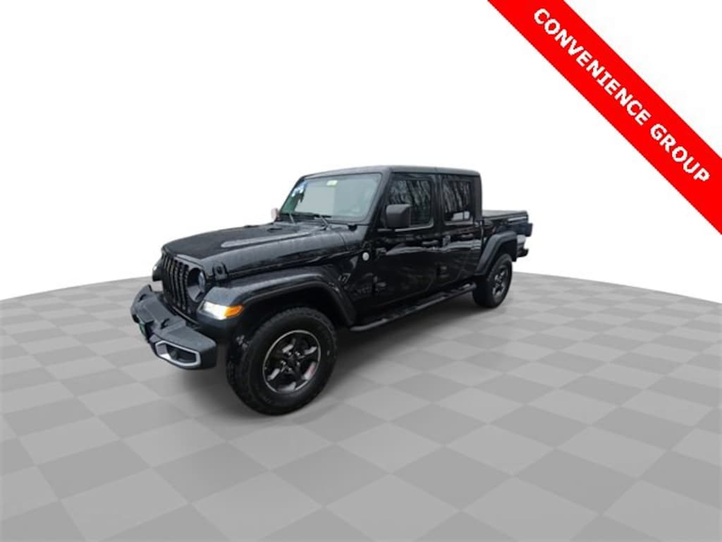 Features: Convenience Group, Popular Equipment Package (Black 3-Piece Hard Top), Quick Order Package 24S Sport S (Automatic Headlamps, Body Color Fender Flares (2-Piece), Daytime Running Lamp System, Deep Tint Sunscreen Windows, Front 1-Touch Down Power Windows, Leather Wrapped Steering Wheel, Molded in Color Bumper w/Accent Color, Normal Duty Plus Suspension, Power Heated Mirrors, Power Tailgate Lock, Remote Keyless Entry, Security Alarm, Speed Sensitive Power Locks, Sport S, and Sun Visors w/Illuminated Vanity Mirrors), Technology Group (7.0 Touch Screen Display, Air Conditioning w/Auto Temperature Control, Apple CarPlay, Cluster 7.0 TFT Color Display, For More Info, Call 800-643-2112, Google Android Auto, GPS Antenna Input, Integrated Center Stack Radio, Integrated Voice Command w/Bluetooth, Radio: Uconnect 4 w/7 Display, SiriusXM Radio Service, SiriusXM Satellite Radio, and USB Host Flip), Trailer Tow Package (240 Amp Alternator, Class IV Hitch Receiver, Heavy-Duty Engine Cooling, and Trailer Hitch Zoom), Gladiator Sport, Car Bravo Certified, 4D Crew Cab, 3.6L V6 24V VVT, 8-Speed Automatic, 4WD, Black Clearcoat, Black Cloth, 110 mph Vehicle Max Speed Calibration, 3.73 Rear Axle Ratio, 4-Wheel Disc Brakes, 8 Speakers, ABS brakes, Air Conditioning, AM/FM radio, Anti-Lock 4-Wheel Disc Heavy Duty Brakes, Brake assist, Cloth Low-Back Bucket Seats, Compass, data system, Delay-off headlights, Driver door bin, Driver vanity mirror, Dual front impact airbags, Dual front side impact airbags, Electronic Stability Control, Front anti-roll bar, Front Bucket Seats, Front Center Armrest w/Storage, Front Fog Lights, Front reading lights, Integrated roll-over protection, Low tire pressure warning, MOPAR All-Weather Floor Mats (DISC), MOPAR Hardtop Headliner, MOPAR Spray In Bedliner, Normal Duty Suspension, Occupant sensing airbag, Outside temperature display, ParkView Rear Back-Up Camera, Passenger door bin, Passenger vanity mirror, Power steering, Radio: Uconnect 3 w/5 Display, Rear anti-roll bar, Rear reading lights, Speed control, Split folding rear seat, Steering wheel mounted audio controls, Tachometer, Telescoping steering wheel, Tilt steering wheel, Traction control, Trip computer, Variably intermittent wipers, Wheels: 17 x 7.5 Black Steel Styled, and Wheels: 17 x 7.5 Tech Silver Alum (DISC)