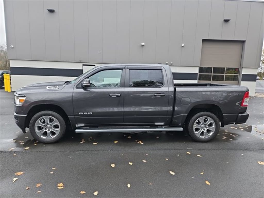 Recent Arrival! Clean CARFAX. 2022 Ram 1500 Big Horn/Lone Star 4D Crew Cab HEMI 5.7L V8 Multi Displacement VVT 4WD Granite Crystal Metallic ClearcoatFeatures: Big Horn Level 1 Equipment Group (2nd Row In Floor Storage Bins, 4G LTE Wi-Fi Hot Spot, 8.4 Touchscreen Display, Apple CarPlay, Auto-Dimming Exterior Driver Mirror, Auto-Dimming Rear-View Mirror, Black Exterior Mirrors, Black Premium Power Mirrors, Bluetooth Handsfree Phone & Audio, Class IV Receiver Hitch, Cluster 3.5 TFT Color Display, Connectivity - US/Canada, Convex Wide-Angle Mirror Insert, Exterior Mirrors Courtesy Lamps, Exterior Mirrors w/Heating Element, Exterior Mirrors w/Supplemental Signals, For Details, Visit DriveUconnect.com, Global Telematics Box Module (TBM), Glove Box Lamp, Google Android Auto, GPS Antenna Input, Integrated Center Stack Radio, Power 2-Way Driver Lumbar Adjust, Power 8-Way Driver Seat, Power Adjustable Pedals, Power-Folding Mirrors, Radio: Uconnect 5 W w/8.4 Display, Rear Dome w/On/Off Switch Lamp, Rear Power Sliding Window, Rear Window Defroster, SiriusXM Radio Service, SiriusXM Satellite Radio, Sun Visors w/Illuminated Vanity Mirrors, Universal Garage Door Opener, and USB Host Flip), Level 1 Safety Group (Advanced Brake Assist, Full Speed Forward Collision Warning Plus, Lane Keep Assist, and Pedestrian Emergency Braking), Quick Order Package 25Z Big Horn (Big Horn Badge), Sport Appearance Package (3 Rear Seat Head Restraints, 4 Way Front Headrests, All Plant-Installed Decals, Black Interior Accents, Body Color Exterior Mirrors, Body Color Front Bumper, Body Color Premium Power Mirrors, Body Color Rear Bumper w/Step Pads, Bridgestone Brand Tires, Bucket Seats, Delete LED Lamp - Floor Console Bin, Deluxe Cloth Bucket Seats, Front Seat Back Map Pockets, Full Length Floor Console, Manual Adjust 4-Way Front Passenger Seat, Rear 60/40 Folding Seat, Rear Center Armrest, and Sport Decal), 3.21 Rear Axle Ratio, 4-Wheel Disc Brakes, 48V Belt Starter Generator, 6 Speakers, ABS brakes, Air Conditioning, Air Conditioning ATC w/Dual Zone Control, All R1 High Radios, All Radio Equipped Vehicles, Alloy wheels, AM/FM radio, Brake assist, Bumpers: chrome, Cloth Bench Seat, Compass, Connected Travel & Traffic Services, data system, Delay-off headlights, Disassociated Touchscreen Display, Driver door bin, Dual front impact airbags, Dual front side impact airbags, Electronic Stability Control, Emergency communication system: SiriusXM Guardian, Front anti-roll bar, Front Center Armrest w/Storage, Front Fog Lights, Front License Plate Bracket, Front reading lights, Front wheel independent suspension, Fully Automatic Headlights, GPS Navigation, HD Radio, Heated door mirrors, Heavy-Duty Engine Cooling, Illuminated entry, Integrated Voice Command w/Bluetooth, Leather steering wheel, Low tire pressure warning, MOPAR Front & Rear Rubber Floor Mats, Occupant sensing airbag, Outside temperature display, Overhead airbag, Overhead console, Panic alarm, ParkView Rear Back-Up Camera, Passenger door bin, Passenger vanity mirror, Power door mirrors, Power steering, Power Windows, Radio: Uconnect 3 w/5 Display, Radio: Uconnect 5 Nav w/8.4 Display, Rear anti-roll bar, Rear seat center armrest, Rear step bumper, Remote Keyless Entry, Remote Start System, SiriusXM w/360L, Speed control, Split folding rear seat, Steering wheel mounted audio controls, Tachometer, Telescoping steering wheel, Tilt steering wheel, Traction control, Trip computer, Variably intermittent wipers, Voltmeter, Wheel to Wheel Side Steps, Wheels: 18 x 8 Cast-Aluminum Painted, and Wheels: 20 x 9 Aluminum Chrome ClaD.