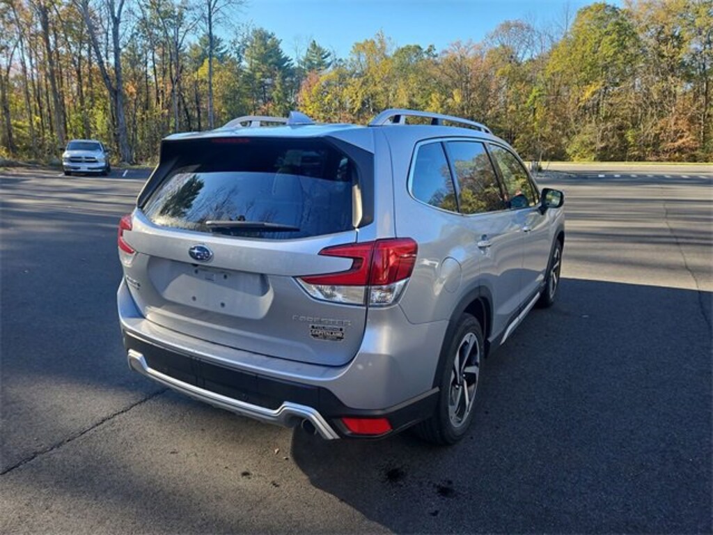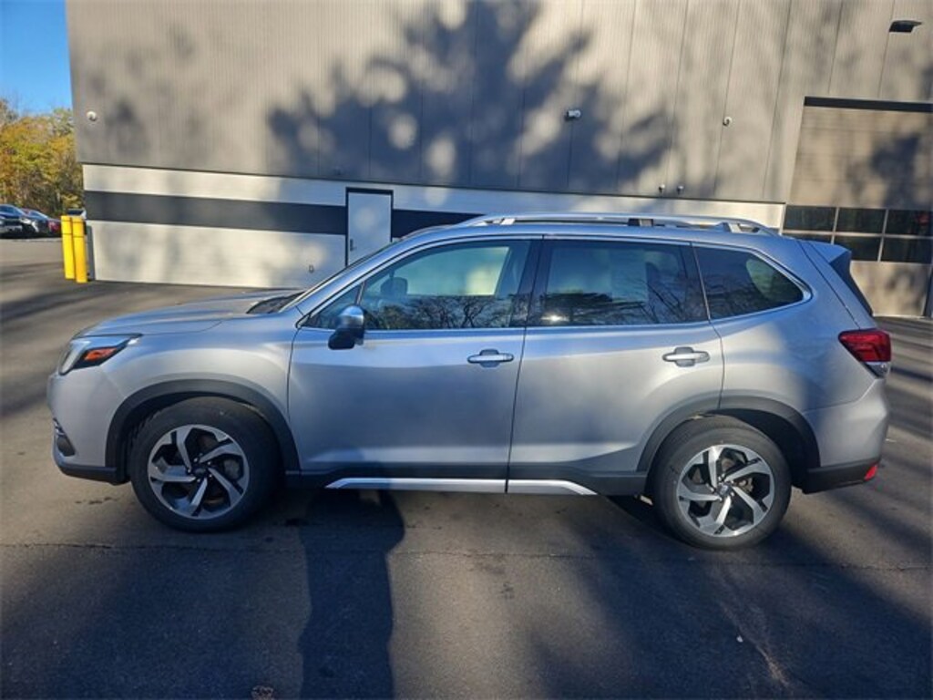 *HEATED SEATS, HARMON/KARDON PREMIUM 9-SPEAKER AUDIO SYSTEM, PERFORATED LEATHER-TRIMMED UPHOLSTERY, AND MORE!*2023 Subaru Forester Touring blends all-weather capability, refined comfort, and advanced safety in a compact SUV. Powered by a 2.5L BOXER 4-cylinder engine paired with a CVT automatic transmission and Subaruâs Symmetrical All-Wheel Drive, this Forester delivers confident handling and excellent fuel efficiency. The Touring trim offers premium features like leather-trimmed seating, heated and ventilated front seats, panoramic moonroof, and power liftgate. Technology highlights include Subaru STARLINK infotainment with touchscreen, Apple CarPlay, Android Auto, Bluetooth, and navigation. Safety features include EyeSight Driver Assist, blind spot detection, lane keep assist, and rear cross-traffic alert. Luxurious, capable, and adventure-ready.Certification Program Details: CarBravo is a used vehicle experience offered to Chevrolet, Buick and GMC dealers. It is designed to provide shoppers and buyers with an exceptional experience regardless of what brand or type of used vehicle theyâre looking for. When customers shop CarBravo, they receive: Exceptional Convenience: Customers can shop and buy how they want online, at the dealership or a combination of both Peace of Mind: Every CarBravo vehicle comes with a limited warranty Long-term Support: CarBravo provides benefits, support and service throughout the customerâs ownership lifetimeFeatures: Standard Model, Forester Touring, Car Bravo Certified, 4D Sport Utility, 2.5L 4-Cylinder DOHC 16V, Lineartronic CVT, AWD, Ice Silver Metallic, Black Leather, 3.70 Axle Ratio, 4-Wheel Disc Brakes, 9 Speakers, ABS brakes, Air Conditioning, Alloy wheels, Anti-whiplash front head restraints, Auto High-beam Headlights, Automatic temperature control, Backup Camera, Brake assist, Bumpers: body-color, CD player, data system, Driver door bin, Driver vanity mirror, Dual front impact airbags, Dual front side impact airbags, Electronic Stability Control, Emergency communication system: STARLINK Safety and Security (Subscription Required), Four wheel independent suspension, Front anti-roll bar, Front Bucket Seats, Front Center Armrest, Front dual zone A/C, Front Fog Lights, Front reading lights, Fully Automatic Headlights, harman/kardon 9-Speaker Audio System, harman/kardon® Speakers, Heated door mirrors, Heated Front Bucket Seats, Heated Front seats, Heated Rear Seats, Heated steering wheel, HVAC memory, Illuminated entry, Knee airbag, Leather Shift Knob, Low tire pressure warning, Memory seat, Navigation System, Occupant sensing airbag, Outside temperature display, Overhead airbag, Overhead console, Panic alarm, Passenger door bin, Passenger vanity mirror, Perforated Leather-Trimmed Upholstery, Power door mirrors, Power driver seat, Power Liftgate, Power moonroof: Panoramic, Power passenger seat, Power steering, Power Windows, Premium audio system: harman/kardon, Radio: Subaru Starlink 8.0 Multimedia Nav System, Rear anti-roll bar, Rear seat center armrest, Rear window defroster, Rear window wiper, Remote Keyless Entry, Roof rack: rails only, Security system, SiriusXM Satellite Radio, Speed control, Speed-sensing steering, Split folding rear seat, Spoiler, STARLINK/Apple CarPlay/Android Auto, Steering wheel mounted audio controls, Tachometer, Telescoping steering wheel, Tilt steering wheel, Traction control, Trip computer, Turn signal indicator mirrors, Variably intermittent wipers, and Wheels: 18 x 7.0 J Dark Gray Machine Finish Alloy.