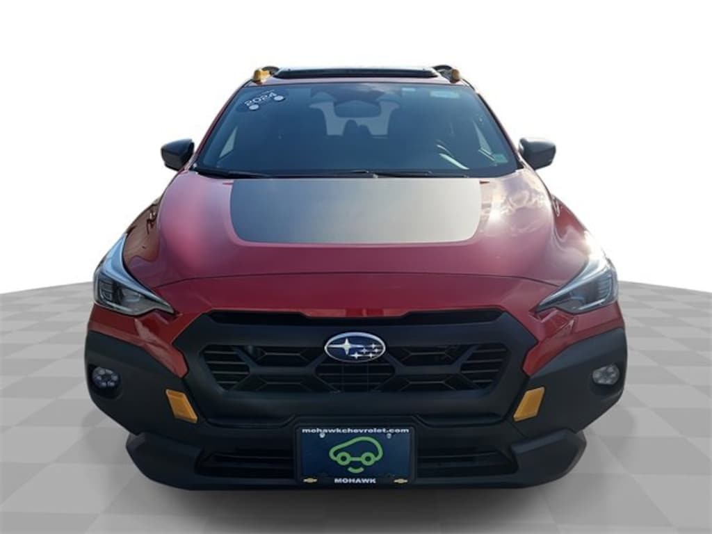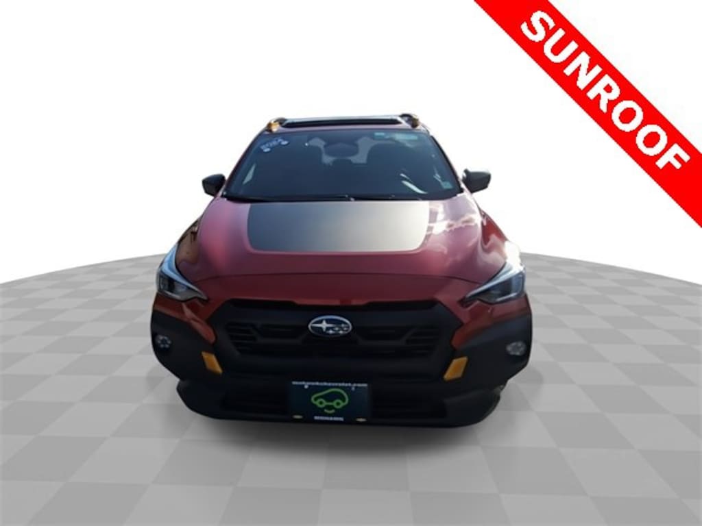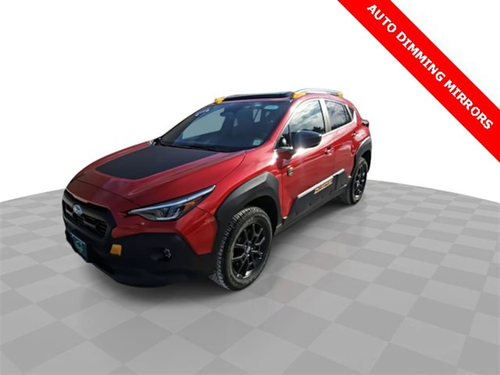 Features: harman/kardon Aud & Pwr Moonroof & Pwr Driver Seat (10-Way Power Driver's Seat, harman/kardon Surround Sound Speaker System, and Power Moonroof), Crosstrek Wilderness, Car Bravo Certified, 4D Sport Utility, 2.5L 4-Cylinder DOHC 16V, Lineartronic CVT, AWD, Lithium Red Pearl, Black Premium Synthetic, 4-Wheel Disc Brakes, 4.11 Axle Ratio, 6 Speakers, ABS brakes, Air Conditioning, Alloy wheels, Anti-whiplash front head restraints, Auto High-beam Headlights, Automatic temperature control, Backup Camera, Brake assist, Bumpers: body-color, data system, Driver door bin, Driver vanity mirror, Dual front impact airbags, Dual front side impact airbags, Electronic Stability Control, Emergency communication system: STARLINK Safety and Security (Subscription Required), Four wheel independent suspension, Front anti-roll bar, Front Bucket Seats, Front Center Armrest, Front dual zone A/C, Front Fog Lights, Front reading lights, Fully Automatic Headlights, Heated door mirrors, Heated Front Bucket Seats, Heated Front seats, Illuminated entry, Knee airbag, Leather Shift Knob, Low tire pressure warning, Occupant sensing airbag, Outside temperature display, Overhead airbag, Overhead console, Panic alarm, Passenger door bin, Passenger vanity mirror, Power door mirrors, Power steering, Power Windows, Radio: Subaru STARLINK 11.6 Multimedia Plus Sys, Rear anti-roll bar, Rear seat center armrest, Rear window defroster, Rear window wiper, Remote Keyless Entry, Security system, SiriusXM Satellite Radio, Speed control, Speed-sensing steering, Split folding rear seat, Spoiler, STARLINK/Apple CarPlay/Android Auto, Steering wheel mounted audio controls, Tachometer, Telescoping steering wheel, Tilt steering wheel, Traction control, Trip computer, Turn signal indicator mirrors, Variably intermittent wipers, Wheels: 17 x 7.0J Matte Black Aluminum Alloy, and Wilderness StarTex Upholstery.