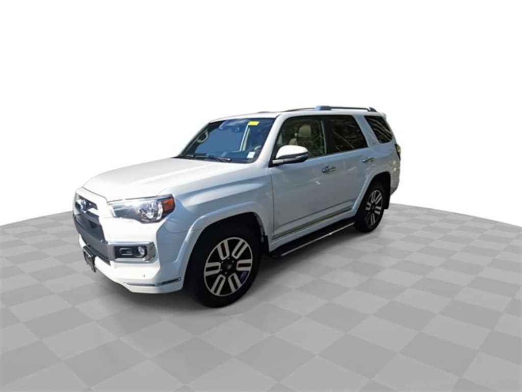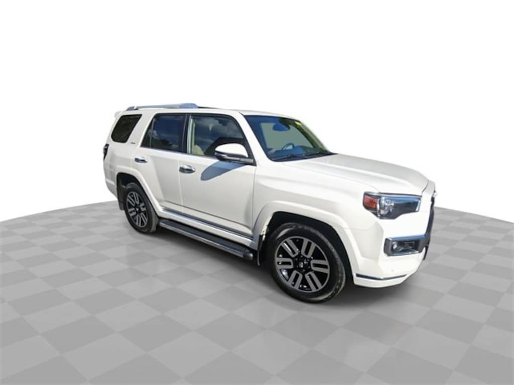Features: 4Runner Limited, Car Bravo Certified, 4D Sport Utility, 4.0L V6 DOHC 24V, 5-Speed with ECT, 4WD, White, Leather, 15 Speakers, 3.727 Axle Ratio, 4-Wheel Disc Brakes, ABS brakes, Air Conditioning, Alloy wheels, Anti-whiplash front head restraints, Apple CarPlay/Android Auto, Auto High-beam Headlights, Auto-dimming Rear-View mirror, Automatic temperature control, Brake assist, Bumpers: body-color, Compass, Delay-off headlights, Driver door bin, Driver vanity mirror, Dual front impact airbags, Dual front side impact airbags, Dual Zone Auto Climate Control, Electronic Stability Control, Emergency communication system: Safety Connect (1-year trial), Front anti-roll bar, Front Bucket Seats, Front Center Armrest, Front dual zone A/C, Front Fog Lights, Front reading lights, Front wheel independent suspension, Fully Automatic Headlights, Garage Door Opener, Garage door transmitter: HomeLink, Heated & Ventilated Front Bucket Seats, Heated door mirrors, Heated Front seats, Heated Outside Rear-View Mirrors, Illuminated entry, Knee airbag, Leather Seat Trim, Low tire pressure warning, Memory seat, Moonroof w/Tilt Up & Slide, Navigation System, Occupant sensing airbag, Outside temperature display, Overhead airbag, Overhead console, Panic alarm, Panoramic Back Monitor, Passenger door bin, Passenger vanity mirror, Power door mirrors, Power driver seat, Power Moonroof, Power passenger seat, Power steering, Power Windows, Radio: Premium Audio w/JBL, Rear anti-roll bar, Rear seat center armrest, Rear window defroster, Rear window wiper, Remote Keyless Entry, Security system, Silver Roof Rails, SiriusXM Satellite Radio, Speed control, Speed-sensing steering, Split folding rear seat, Spoiler, Steering wheel mounted audio controls, Tachometer, Telescoping steering wheel, Tilt steering wheel, Traction control, Trip computer, Turn signal indicator mirrors, Variably intermittent wipers, Ventilated Front Seats, and Wheels: 20 Unique Dual 6-Spoke Alloy.