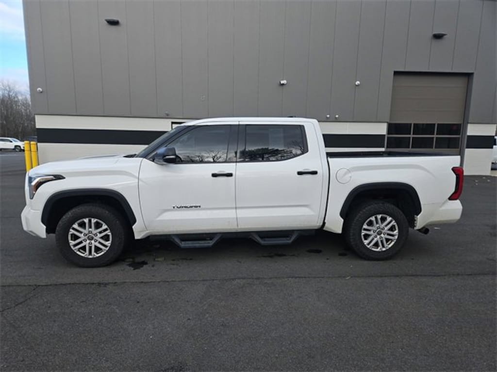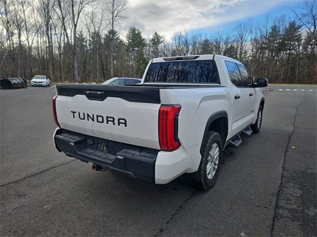 **SR5 CONVENIENCE PACKAGE! BLIND SPOT MONITOR AND FRONT & REAR PARK ASSIST WITH AUTOMATIC BRAKING!**Unleash bold capability with this pristine 2023 Toyota Tundra SR5 CrewMax 4x4 in stunning Celestial Silver Metallic! This full-size powerhouse rocks the SR5 Premium Package with 20 alloy wheels, SofTex-trimmed heated seats, 14 touchscreen with wireless Apple CarPlay/Android Auto, and blind-spot monitoring. Loaded with tow tech package, power vertical rear window, bed utility group, and LED lighting. One-owner, low miles, Toyota Safety Sense 2.5, and legendary reliability make this Tundra the ultimate work-play truck. Immaculate inside and out drive home the best! Schedule your test drive today!Certification Program Details: CarBravo is a used vehicle experience offered to Chevrolet, Buick and GMC dealers. It is designed to provide shoppers and buyers with an exceptional experience regardless of what brand or type of used vehicle theyâre looking for. When customers shop CarBravo, they receive: Exceptional Convenience: Customers can shop and buy how they want online, at the dealership or a combination of both Peace of Mind: Every CarBravo vehicle comes with a limited warranty Long-term Support: CarBravo provides benefits, support and service throughout the customerâs ownership lifetimeFeatures: Tundra SR5, Car Bravo Certified, 4D CrewMax, 3.4L V6, 10-Speed Automatic, 4WD, White, Black Cloth, 18 Alloy Wheels, 3.31 Axle Ratio, 4-Way Adjustable Front Bucket Seats, 4-Wheel Disc Brakes, 9 Speakers, ABS brakes, Air Conditioning, Alloy wheels, Apple CarPlay/Android Auto, Auto High-beam Headlights, Automatic temperature control, Backup Camera, Brake assist, Bumpers: body-color, data system, Delay-off headlights, Driver door bin, Driver vanity mirror, Dual front impact airbags, Dual front side impact airbags, Electronic Stability Control, Emergency communication system: Safety Connect (10-year trial), Fabric Seat Trim (FB), Front anti-roll bar, Front Bucket Seats, Front Center Armrest, Front Fog Lights, Front reading lights, Front wheel independent suspension, Fully Automatic Headlights, Heated door mirrors, Illuminated entry, Knee airbag, Low tire pressure warning, Occupant sensing airbag, Outside temperature display, Overhead airbag, Overhead console, Panic alarm, Passenger door bin, Passenger vanity mirror, Power door mirrors, Power steering, Power Windows, Radio: Audio Multimedia System, Rear reading lights, Rear step bumper, Rear window defroster, Remote Keyless Entry, Safety Connect, Security system, SiriusXM Satellite Radio, Speed control, Speed-sensing steering, Split folding rear seat, Steering wheel mounted audio controls, Tachometer, Telescoping steering wheel, Tilt steering wheel, Traction control, Trip computer, Variably intermittent wipers, and Voltmeter.