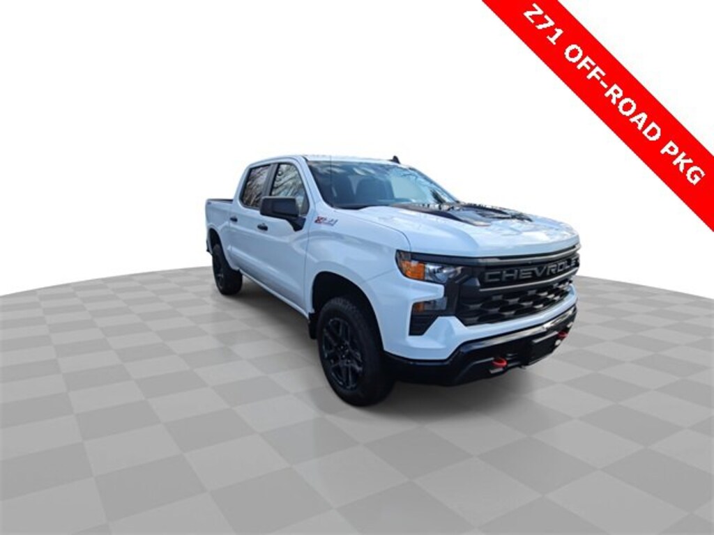 Features: Custom Convenience Package (Electric Rear-Window Defogger, EZ Lift Power Lock & Release Tailgate, LED Cargo Area Lighting, and Remote Vehicle Starter System), Preferred Equipment Group 2CX (10-Way Power Driver Seat w/Lumbar, 120-Volt Bed Mounted Power Outlet, 120-Volt Instrument Panel Power Outlet, 3.5 Monochromatic Display Driver Info Center, Auto-Locking Rear Differential, Bluetooth, Chevrolet Connected Access Capable, Color-Keyed Carpeting Floor Covering, Compass, Deep-Tinted Glass, Dual Rear USB Ports (Charge Only), Electrical Steering Column Lock, Electronic Cruise Control, Front Rubberized Vinyl Floor Mats, HD Rear Vision Camera, Manual Tilt Wheel Steering Column, OnStar & Chevrolet Connected Services Capable, Performance Red Recovery Hooks, Power Front Windows w/Driver Express Up/Down, Power Front Windows w/Passenger Express Down, Power Rear Windows w/Express Down, Rear 60/40 Folding Bench Seat (Folds Up), Rear Rubberized-Vinyl Floor Mats, Remote Keyless Entry, SiriusXM Satellite Radio, Standard Tailgate, Theft Deterrent System (Unauthorized Entry), Wi-Fi Hot Spot Capable, and Wireless Phone Projection), Suspension Package (Heavy-Duty Air Filter and Hill Descent Control), Trailering Package (Hitch Guidance), Silverado 1500 Custom Trail Boss, Car Bravo Certified, 4D Crew Cab, 2.7L Turbo, 8-Speed Automatic, 4WD, Summit White, 220 Amp Alternator, 3.42 Rear Axle Ratio, 4-Wheel Disc Brakes, 40/20/40 Front Split-Bench Seat, 6 Speakers, 6-Speaker Audio System, ABS brakes, Air Conditioning, Alloy wheels, Apple CarPlay/Android Auto, Auto High-beam Headlights, Automatic Emergency Braking, Brake assist, Cloth Seat Trim, data system, Delay-off headlights, Driver door bin, Driver vanity mirror, Dual front impact airbags, Dual front side impact airbags, Electronic Stability Control, Following Distance Indicator, Forward Collision Alert, Front anti-roll bar, Front Center Armrest w/Storage, Front License Plate Kit, Front Pedestrian Braking, Front reading lights, Front wheel independent suspension, Fully Automatic Headlights, Heated door mirrors, Illuminated entry, IntelliBeam Automatic High Beam On/Off, Lane Keep Assist w/Lane Departure Warning, Low tire pressure warning, Not Equipped w/Rear USB Ports, Not Equipped w/Steering Column Lock, Occupant sensing airbag, Outside temperature display, Overhead airbag, Overhead console, Panic alarm, Passenger door bin, Passenger vanity mirror, Power door mirrors, Power driver seat, Power steering, Power Windows,