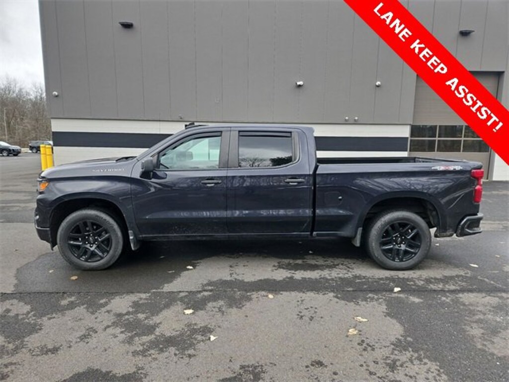 **CHEVY SAFETY ASSIST! AUTOMATIC EMERGENCY BRAKING, LANE KEEP ASSIST, FORWARD COLLISION ALERT, FRONT PEDESTRIAN BRAKING, FOLLOWING DISTANCE INDICATOR, AND MORE!**Experience power, style, and reliability with the **2022 Chevrolet Silverado 1500 Custom**. Built for both work and play, this full-size pickup offers impressive towing capability, a smooth ride, and advanced technology for every drive. Its bold exterior design features a commanding grille, sleek body lines, and durable alloy wheels that make a strong statement on any road. Inside, enjoy modern comfort, smart connectivity, and ample space for passengers and cargo. Whether hauling heavy loads or heading out for adventure, the Silverado 1500 Custom delivers dependable performance, innovative safety features, and the strength you expect from Chevrolet.Certification Program Details: CarBravo is a used vehicle experience offered to Chevrolet, Buick and GMC dealers. It is designed to provide shoppers and buyers with an exceptional experience regardless of what brand or type of used vehicle theyâre looking for. When customers shop CarBravo, they receive: Exceptional Convenience: Customers can shop and buy how they want online, at the dealership or a combination of both Peace of Mind: Every CarBravo vehicle comes with a limited warranty Long-term Support: CarBravo provides benefits, support and service throughout the customerâs ownership lifetimeFeatures: Custom Convenience Package (Electric Rear-Window Defogger, EZ Lift Power Lock & Release Tailgate, LED Cargo Area Lighting, and Remote Vehicle Starter System), Custom Value Package, High Capacity Suspension Package, Preferred Equipment Group 1CX (10-Way Power Driver Seat w/Lumbar, 120-Volt Bed Mounted Power Outlet, 120-Volt Instrument Panel Power Outlet, 3.5 Monochromatic Display Driver Info Center, Bluetooth, Chevrolet Connected Access Capable, Color-Keyed Carpeting Floor Covering, Compass, Deep-Tinted Glass, Dual Rear USB Ports (Charge Only), Electrical Steering Column Lock, Electronic Cruise Control, Front Frame-Mounted Black Recovery Hooks, Front Rubberized Vinyl Floor Mats, HD Rear Vision Camera, Manual Tilt Wheel Steering Column, OnStar & Chevrolet Connected Services Capable, Power Front Windows w/Driver Express Up/Down, Power Front Windows w/Passenger Express Down, Power Rear Windows w/Express Down, Rear 60/40 Folding Bench Seat (Folds Up), Rear Rubberized-Vinyl Floor Mats, Remote Keyless Entry, SiriusXM Satellite Radio, Standard Tailgate, Theft Deterrent System (Unauthorized Entry), Wi-Fi Hot Spot Capable, and Wireless Phone Projection), Trailering Package (Hitch Guidance), Silverado 1500 Custom, Car Bravo Certified, 4D Crew Cab, 2.7L Turbo, 8-Speed Automatic, 4WD, Dark Ash Metallic, Black Cloth, 3.42 Rear Axle Ratio, 4-Wheel Disc Brakes, 40/20/40 Front Split-Bench Seat, 6 Speakers, 6-Speaker Audio System, ABS brakes, Air Conditioning, Alloy wheels, Apple CarPlay/Android Auto, Auto High-beam Headlights, Automatic Emergency Braking, Brake assist, Bumpers: body-color, Cloth Seat Trim, data system, Delay-off headlights, Driver door bin, Driver vanity mirror, Dual front impact airbags, Dual front side impact airbags, Electronic Stability Control, Following Distance Indicator, Forward Collision Alert, Front anti-roll bar, Front Center Armrest w/Storage, Front License Plate Kit, Front Pedestrian Braking, Front reading lights, Front wheel independent suspension, Fully Automatic Headlights, Heated door mirrors, Illuminated entry, IntelliBeam Automatic High Beam On/Off, Lane Keep Assist w/Lane Departure Warning, Low tire pressure warning, Not Equipped w/Rear USB Ports, Not Equipped w/Steering Column Lock, Occupant sensing airbag, Outside temperature display, Overhead airbag, Overhead console, Panic alarm, Passenger door bin, Passenger vanity mirror, Power door mirrors, Power driver seat, Power steering, Power Windows, Premium audio system: Chevrolet Infotainment 3