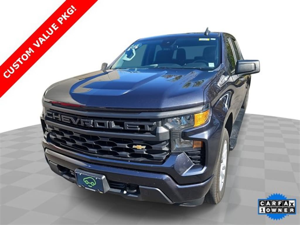 Features: Custom Convenience Package (Electric Rear-Window Defogger, EZ Lift Power Lock & Release Tailgate, LED Cargo Area Lighting, and Remote Vehicle Starter System), Custom Value Package, High Capacity Suspension Package, Preferred Equipment Group 1CX (10-Way Power Driver Seat w/Lumbar, 120-Volt Bed Mounted Power Outlet, 120-Volt Instrument Panel Power Outlet, 3.5 Monochromatic Display Driver Info Center, Bluetooth, Chevrolet Connected Access Capable, Color-Keyed Carpeting Floor Covering, Compass, Deep-Tinted Glass, Dual Rear USB Ports (Charge Only), Electrical Steering Column Lock, Electronic Cruise Control, Front Frame-Mounted Black Recovery Hooks, Front Rubberized Vinyl Floor Mats, HD Rear Vision Camera, Manual Tilt Wheel Steering Column, OnStar & Chevrolet Connected Services Capable, Power Front Windows w/Driver Express Up/Down, Power Front Windows w/Passenger Express Down, Power Rear Windows w/Express Down, Rear 60/40 Folding Bench Seat (Folds Up), Rear Rubberized-Vinyl Floor Mats, Remote Keyless Entry, SiriusXM Satellite Radio, Standard Tailgate, Theft Deterrent System (Unauthorized Entry), Wi-Fi Hot Spot Capable, and Wireless Phone Projection), Trailering Package (Hitch Guidance), Silverado 1500 Custom, Car Bravo Certified, 4D Crew Cab, 2.7L Turbo, 8-Speed Automatic, 4WD, Dark Ash Metallic, 3.42 Rear Axle Ratio, 4-Wheel Disc Brakes, 40/20/40 Front Split-Bench Seat, 6 Speakers, 6-Speaker Audio System, ABS brakes, Air Conditioning, Alloy wheels, Apple CarPlay/Android Auto, Auto High-beam Headlights, Automatic Emergency Braking, Brake assist, Bumpers: body-color, Cloth Seat Trim, data system, Delay-off headlights, Driver door bin, Driver vanity mirror, Dual front impact airbags, Dual front side impact airbags, Electronic Stability Control, Following Distance Indicator, Forward Collision Alert, Front anti-roll bar, Front Center Armrest w/Storage, Front License Plate Kit, Front Pedestrian Braking, Front reading lights, Front wheel independent suspension, Fully Automatic Headlights, Heated door mirrors, Illuminated entry, IntelliBeam Automatic High Beam On/Off, Lane Keep Assist w/Lane Departure Warning, Low tire pressure warning, Not Equipped w/Rear USB Ports, Not Equipped w/Steering Column Lock, Occupant sensing airbag, Outside temperature display, Overhead airbag, Overhead console, Panic alarm, Passenger door bin, Passenger vanity mirror, Power door mirrors, Power driver seat, Power steering, Power Windows, Premium audio system: Chevrolet Infotainment 3, Radio: Chevrolet Infotainment 3 System, Rear reading lights, Rear step bumper, Rear window defroster, Remote Keyless Entry, Security system, SiriusXM Satellite Radio, Speed control