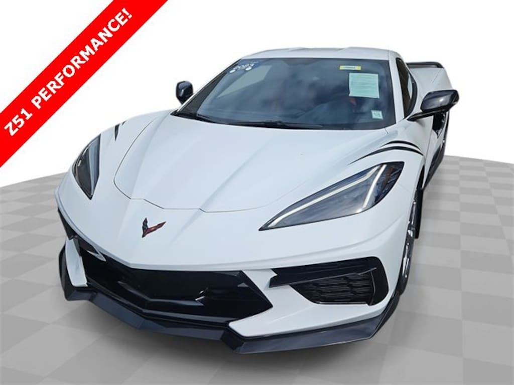 Features: Battery Protection Package, Preferred Equipment Group 1LT, Z51 Performance Package (Electronic Limited-Slip Differential, Heavy-Duty Cooling System, Performance Exhaust w/Stainless-Steel Tips, Performance Rear Axle Ratio, Rear Z51 Spoiler, Z51 Performance Brakes, and Z51 Performance Suspension), Corvette Stingray 1LT, 2D Coupe, 6.2L V8, 8-Speed Dual Clutch, RWD, Arctic White, Jet Black Leather, 10 Speakers, 4-Wheel Disc Brakes, 8-Way Power Driver Seat Adjuster, 8-Way Power Passenger Seat Adjuster, ABS brakes, Air Conditioning, Alloy wheels, Apple CarPlay/Android Auto, Automatic temperature control, Black Custom Splash Guards (LPO), Black Lug Nuts (LPO), Body-Color Removable Roof Panel, Bose Premium 10-Speaker Audio System Feature, Brake assist, Bumpers: body-color, Compass, data system, Delay-off headlights, Driver door bin, Driver vanity mirror, Dual front impact airbags, Dual front side impact airbags, Edge Red-Painted Calipers, Electronic Stability Control, Emergency communication system: OnStar and Chevrolet connected services capable, Four wheel independent suspension, Front anti-roll bar, Front Bucket Seats, Front Center Armrest, Front dual zone A/C, Front reading lights, Fully Automatic Headlights, GT1 Bucket Seats, HD Radio, Heated door mirrors, Illuminated entry, Leather Shift Knob, Leather steering wheel, Low tire pressure warning, Mulan Lthr Seating Surfaces w/Perforated Inserts, Occupant sensing airbag, Outside temperature display, Overhead console, Panic alarm, Passenger door bin, Passenger vanity mirror, Personalized Plaque w/Corvette Museum Logo, Power door mirrors, Power driver seat, Power passenger seat, Power steering, Power Windows, Premium audio system: Chevrolet Infotainment 3 Plus, Radio: Chevrolet Infotainment 3 Plus System, Rear anti-roll bar, Rear window defroster, Remote Keyless Entry, SiriusXM Satellite Radio, SiriusXM Satellite Radio, Speed control, Speed-sensing steering, Sport steering wheel, Steering wheel mounted audio controls, Tachometer, Telescoping steering wheel, Tilt steering wheel, Traction control, Trip computer, Turn signal indicator mirrors, Variably intermittent wipers, Voltmeter, Wheels: 19 x 8.5 Fr/20 x 11 Rr Bright Silver, and Wheels: 19 x 8.5 Fr/20 x 11 Rr Carbon Flash.