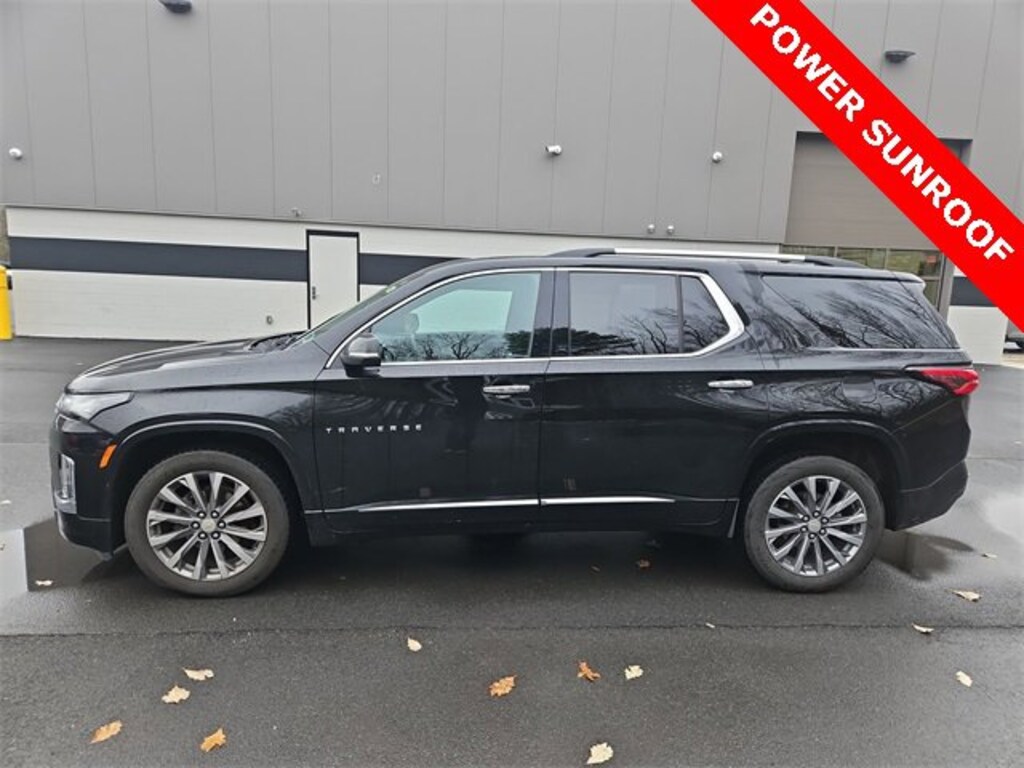 **DUAL SKYSCAPE SUNROOF, HEATED FRONT AND REAR SEATS, VENTILATED FRONT SEATS, POWER TILT & TELESCOPIC STEERING WHEEL, WIRELESS CHARGING, AUTOMATIC CLIMATE CONTROL, UNIVERSAL HOME REMOTE, AND MORE!**Experience refined versatility with the **2023 Chevrolet Traverse Premier**, a full-size SUV designed for families who crave comfort, style, and performance. The Traverse Premier stands out with its bold exterior, premium chrome accents, and sleek LED lighting. Inside, enjoy luxurious leather-appointed seating, spacious three-row comfort, and advanced connectivity with Apple CarPlay and Android Auto. Safety is prioritized with Chevy Safety Assist, offering peace of mind on every drive. Whether youâre navigating city streets or hitting the open road, the 2023 Chevrolet Traverse Premier delivers power, sophistication, and innovation in every mile the perfect blend of capability and upscale design.Certification Program Details: CarBravo is a used vehicle experience offered to Chevrolet, Buick and GMC dealers. It is designed to provide shoppers and buyers with an exceptional experience regardless of what brand or type of used vehicle theyâre looking for. When customers shop CarBravo, they receive: Exceptional Convenience: Customers can shop and buy how they want online, at the dealership or a combination of both Peace of Mind: Every CarBravo vehicle comes with a limited warranty Long-term Support: CarBravo provides benefits, support and service throughout the customerâs ownership lifetimeFeatures: Front License Plate Bracket Mounting Package, Preferred Equipment Group 1LZ (Heated 2nd Row Outboard Position Seats, Heated Front Seats, and Ventilated Driver & Front Passenger Seats), Traverse Premier, Car Bravo Certified, 4D Sport Utility, 3.6L V6 SIDI VVT, 9-Speed Automatic, AWD, Mosaic Black Metallic, Jet Black Leather, 10 Speakers, 3.49 Axle Ratio, 3rd row seats: split-bench, 4-Wheel Disc Brakes, 6-Way Power Front Passenger Seat, 8-Way Power Driver Seat Adjuster, ABS brakes, Air Conditioning, Alloy wheels, AM/FM radio: SiriusXM with 360L, Apple CarPlay/Android Auto, Auto High-beam Headlights, Auto-dimming door mirrors, Auto-dimming Rear-View mirror, Automatic temperature control, Backup Camera, Bose Premium 10-Speaker Audio System Feature, Brake assist, Bumpers: body-color, Compass, data system, Delay-off headlights, Driver door bin, Driver vanity mirror, Dual front impact airbags, Dual front side impact airbags, Dual SkyScape 2-Panel Power Sunroof, Electronic Stability Control, Emergency communication system, Four wheel independent suspension, Front anti-roll bar, Front Bucket Seats, Front Center Armrest, Front dual zone A/C, Front Passenger 2-Way Power Lumbar, Front reading lights, Fully Automatic Headlights, Garage door transmitter, Heated door mirrors, Heated Front seats, Heated Rear Seats, Heated steering wheel, Illuminated entry, Leather steering wheel, Low tire pressure warning, Memory seat, Navigation System, Not Equipped w/Rear Park Assist (060), Occupant sensing airbag, Outside temperature display, Overhead airbag, Overhead console, Panic alarm, Passenger door bin, Passenger vanity mirror, Perforated Leather-Appointed Seat Trim, Power door mirrors, Power Driver Lumbar Control, Power driver seat, Power Liftgate, Power passenger seat, Power steering, Power Windows, Premium audio system: Chevrolet Infotainment 3 Plus, Radio: Chevrolet Infotainment 3 Plus System w/Navi, Rear air conditioning, Rear anti-roll bar, Rear reading lights, Rear window defroster, Rear window wiper, Remote Keyless Entry, Security system, SiriusXM w/360L, Speed control, Speed-sensing steering, Spoiler, Steering wheel memory, Steering wheel mounted audio controls, Tachometer, Telescoping steering wheel, Tilt steering wheel, Traction control, Trip computer, Turn signal indicator mirrors, Variably intermittent wipers, Ventilated Front Seats, Voltmeter, and Wheels: 20 Metallic Machined-Face Aluminum.
