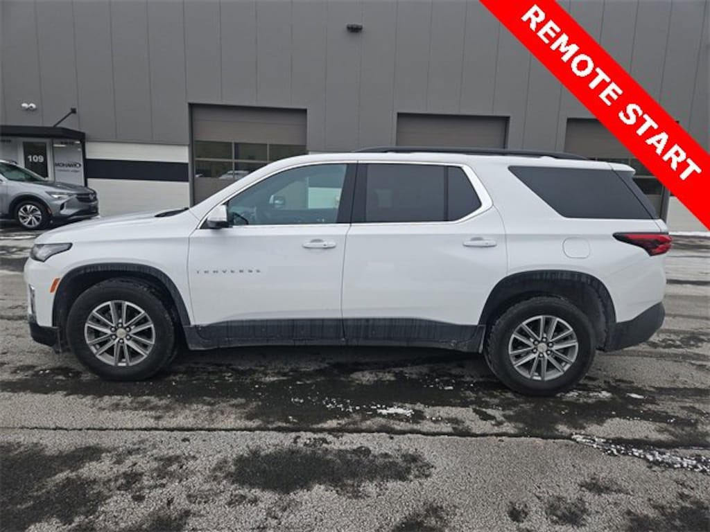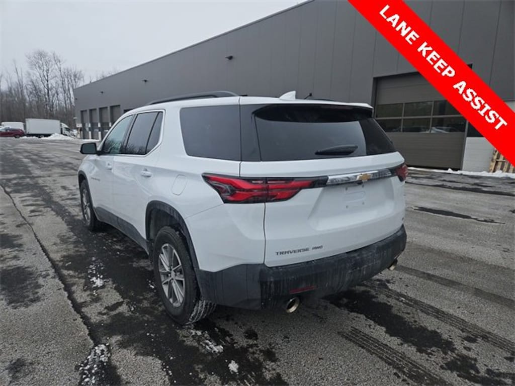 Features: Front License Plate Bracket Mounting Package, Preferred Equipment Group 1LT (Heated Front Seats), Traverse LT 1LT, Car Bravo Certified, 4D Sport Utility, 3.6L V6 SIDI VVT, 9-Speed Automatic, AWD, Summit White, Jet Black Cloth, 2-Way Manual Front Passenger Seat Adjuster, 3.49 Axle Ratio, 3rd row seats: split-bench, 4-Wheel Disc Brakes, 6 Speakers, 6-Speaker Audio System Feature, 8-Way Power Driver Seat Adjuster, ABS brakes, Air Conditioning, Alloy wheels, Apple CarPlay/Android Auto, Auto High-beam Headlights, Automatic temperature control, Backup Camera, Black Roof Rails, Brake assist, Bumpers: body-color, Compass, data system, Delay-off headlights, Driver door bin, Driver vanity mirror, Dual front impact airbags, Dual front side impact airbags, Electronic Stability Control, Emergency communication system, Four wheel independent suspension, Front anti-roll bar, Front Bucket Seats, Front Center Armrest, Front dual zone A/C, Front reading lights, Fully Automatic Headlights, Garage door transmitter, Heated door mirrors, Heated Front seats, Illuminated entry, Leather steering wheel, Low tire pressure warning, Not Equipped w/Rear Park Assist (060), Occupant sensing airbag, Outside temperature display, Overhead airbag, Overhead console, Panic alarm, Passenger door bin, Passenger vanity mirror, Power door mirrors, Power Driver Lumbar Control, Power driver seat, Power Liftgate, Power steering, Power Windows, Premium Cloth Seat Trim, Radio: Chevrolet Infotainment 3 Plus System, Rear air conditioning, Rear anti-roll bar, Rear reading lights, Rear window defroster, Rear window wiper, Remote Keyless Entry, Security system, SiriusXM Satellite Radio, SiriusXM w/360L, Speed control, Speed-sensing steering, Spoiler, Steering wheel mounted audio controls, Tachometer, Telescoping steering wheel, Tilt steering wheel, Traction control, Trip computer, Turn signal indicator mirrors, Variably intermittent wipers, Voltmeter, and Wheels: 18 Bright Silver-Painted Aluminum.