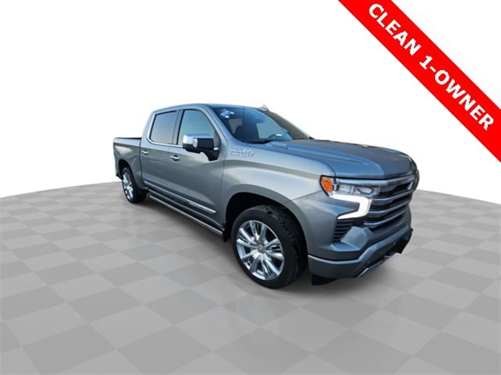 **CLEAN 1-OWNER CARFAX!****SUNROOF, REAR CAMERA MIRROR, HEADS UP DISPLAY, HETAED AND VENTILATED FRONT SEATS, HEATED STEERING WHEEL, REMOTE START, ADAPTIVE RIDE CONTROL, AND MORE!**Experience premium power and refinement with the 2025 Chevrolet Silverado 1500 High Country. This full-size pickup blends bold capability with upscale comfort, featuring signature High Country styling, chrome accents, and a commanding presence on the road. Inside, enjoy a luxurious cabin with premium leather seating, advanced driver-assist technology, a large touchscreen with seamless smartphone integration, and a digital driver display. Designed for both work and everyday driving, the Silverado delivers confident towing, a smooth ride, and innovative storage solutions. If you want a truck that works hard and looks good doing it, this Silverado High Country stands out.Certification Program Details: CarBravo is a used vehicle experience offered to Chevrolet, Buick and GMC dealers. It is designed to provide shoppers and buyers with an exceptional experience regardless of what brand or type of used vehicle theyâre looking for. When customers shop CarBravo, they receive: Exceptional Convenience: Customers can shop and buy how they want online, at the dealership or a combination of both Peace of Mind: Every CarBravo vehicle comes with a limited warranty Long-term Support: CarBravo provides benefits, support and service throughout the customerâs ownership lifetimeFeatures: High Capacity Suspension Package, High Country Premium II Package (Power-Running Boards), High Country Premium Package (All-Weather Floor Liner (LPO), Power Sunroof, and Wheels: 22 x 9 Painted Aluminum), Preferred Equipment Group 3LZ (10-Way Power Driver Seat w/Lumbar, 10-Way Power Passenger Seat Adjuster w/Lumbar, 12.3 Multicolor Reconfigurable Digital Display, 120-Volt Bed Mounted Power Outlet, 120-Volt Interior Power Outlet, 2 USB Data Ports, 2nd Row Heated Outboard Seats, Adaptive Cruise Control, Auto-Dimming Rear-View Mirror, Auto-Locking Rear Differential, Bed View Camera, Bluetooth, Body-Color Painted Mirror Caps, Chevytec Spray-On Black Bedliner, Chrome Recovery Hooks, Chrome Running Boards, Color-Keyed Carpeting Floor Covering, Deep-Tinted Glass, Driver Memory, Dual Exhaust w/Polished Outlets, Dual Rear USB Ports (Charge Only), Electric Rear-Window Defogger, Floor Mounted Center Console, Front Carpeted Floor Mats, Front LED Fog Lamps, Front Rain-Sensing Wipers, HD Surround Vision, Heated Front Seats, Heated Steering Wheel, Hitch Guidance w/Hitch View, In-Vehicle Trailering System App, Integrated Trailer Brake Controller, Keyless Open & Start, LED Cargo Area Lighting, OnStar Services Capable, Outside Heated Power-Adjustable Mirrors, Perimeter Lighting, Power Front Passenger Windows w/Express Up/Down, Power Front Windows w/Driver Express Up/Down, Power Rear Windows w/Express Down, Power Sliding Rear Window w/Rear Defogger, Power Tailgate, Power Tilt & Telescoping Steering Column, Rear Carpeted Floor Mats, Rear Cross Traffic Braking, Rear Pedestrian Alert, Rear Wheelhouse Liners, Remote Vehicle Starter System, Safety Alert Seat, SiriusXM w/360L Trial Subscription, Standard Tailgate, Steering Wheel Audio Controls, Teen Driver, Theft Deterrent System (Unauthorized Entry), Tire Pressure Monitoring System, Trailer Camera Provisions, Trailer Side Blind Zone Alert, Ultrasonic Front & Rear Park Assist, Universal Home Remote, Ventilated Driver & Front Passenger Seats, Wi-Fi Hot Spot Capable, and Wrapped Steering Wheel), Technology Package (15 Diagonal Multicolor Heads-Up Display and Rear Camera Mirror), Trailering Package (Hitch Guidance), Up-Level Rear Seat w/Storage Package, Silverado 1500 High Country, Car Bravo Certified, 4D Crew Cab, 3.0L I6, 10-Speed Automatic, 4WD, Sterling Gray Metallic, Jet Black Leather, 170 Amp Alternator